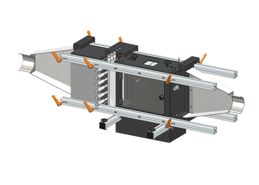 Each type of air conditioning and flow stand is unique and requires different fabrication techniques to produce at the desired stand. We use polymers and stainless steel to form the wind tunnel sections and support the sections on an extruded aluminum frame. Various controls can be added to monitor and control the air parameters using individual controllers, or via a PLC and operator interface.